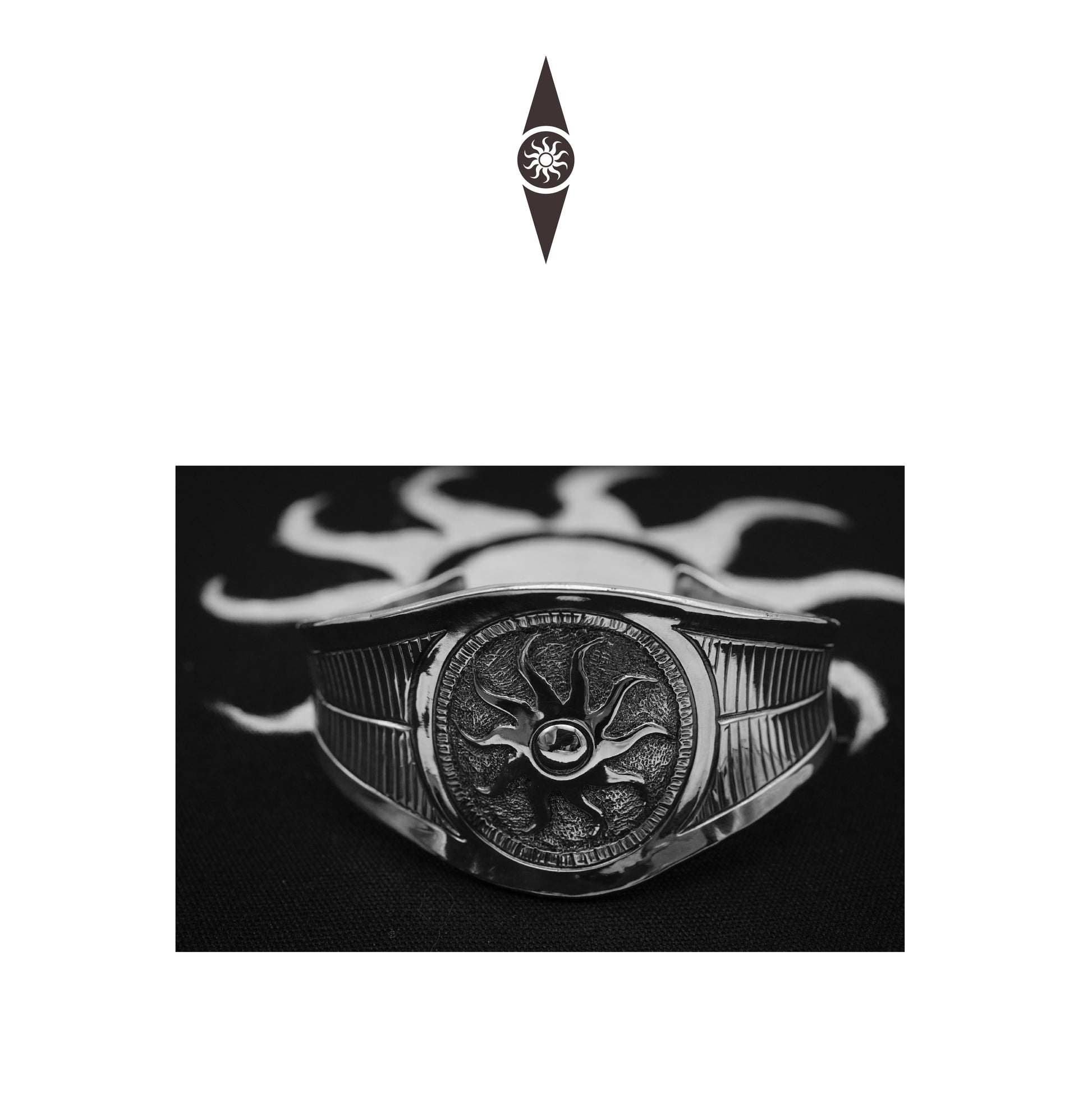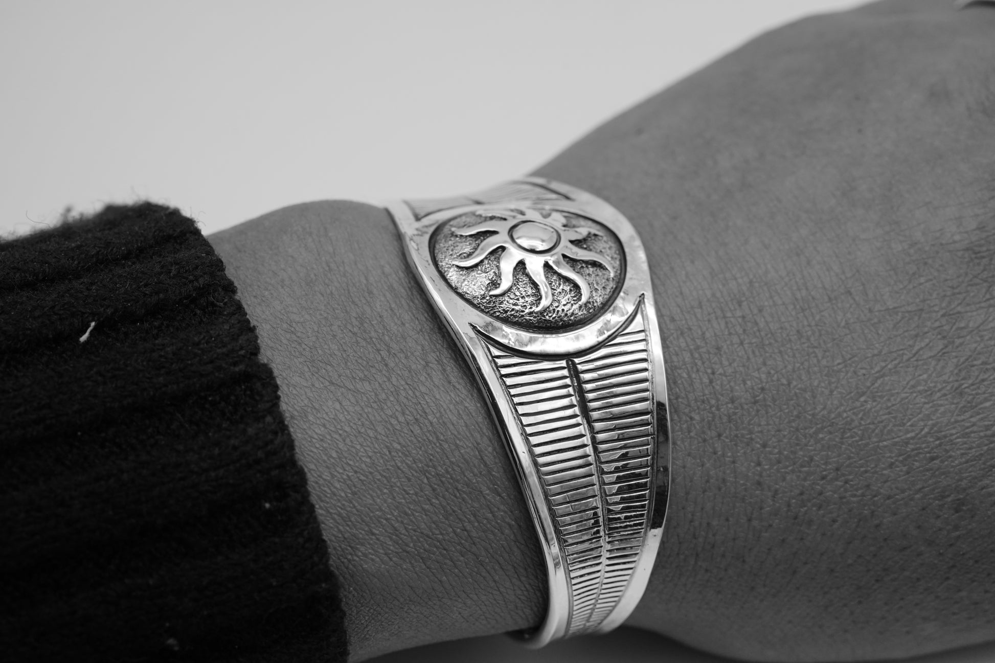Handcrafted Large Sterling Silver Bracelet – Sun Totem Design