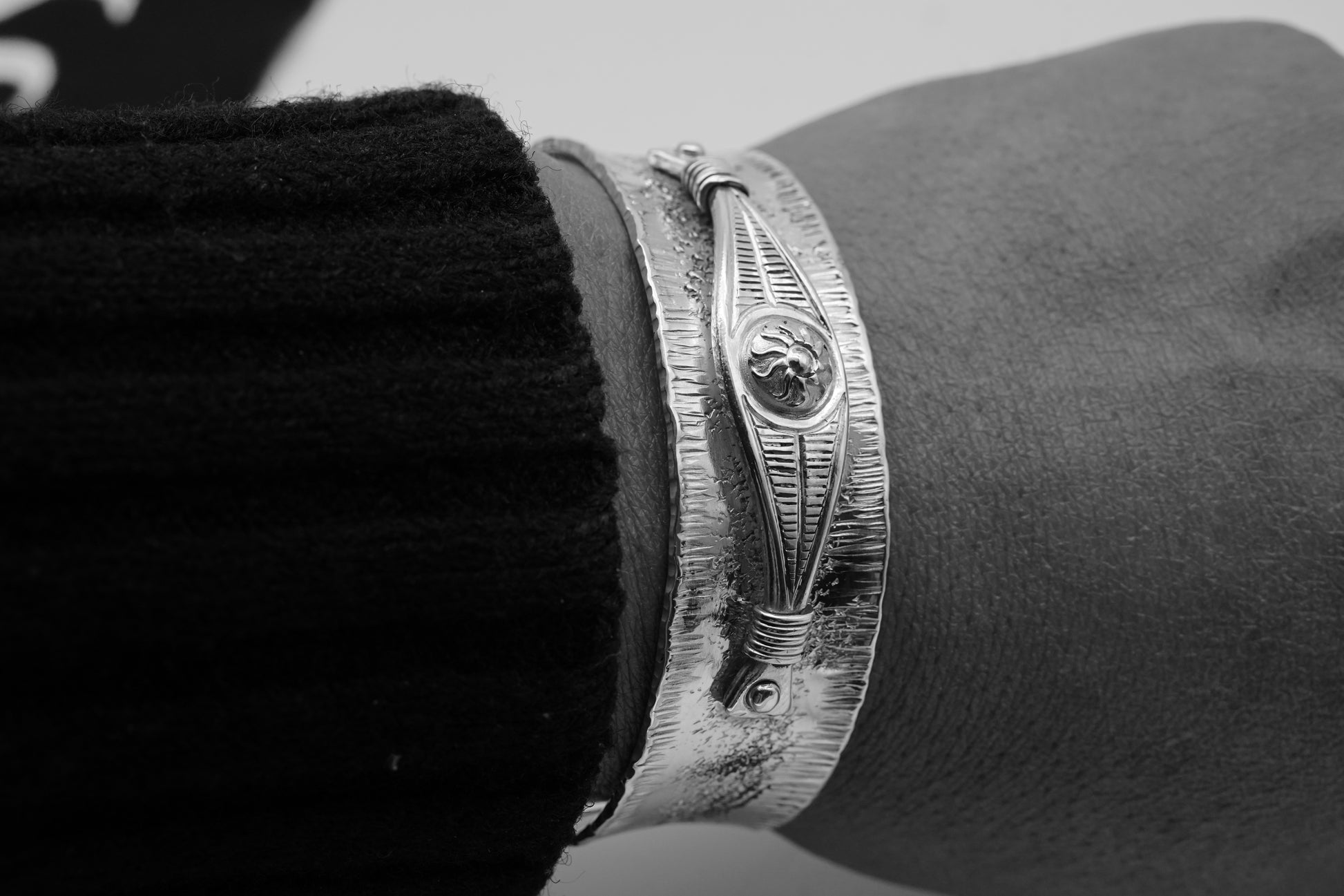 Handcrafted Sterling Silver Open Bracelet – Engraved Geometric Tribal Design