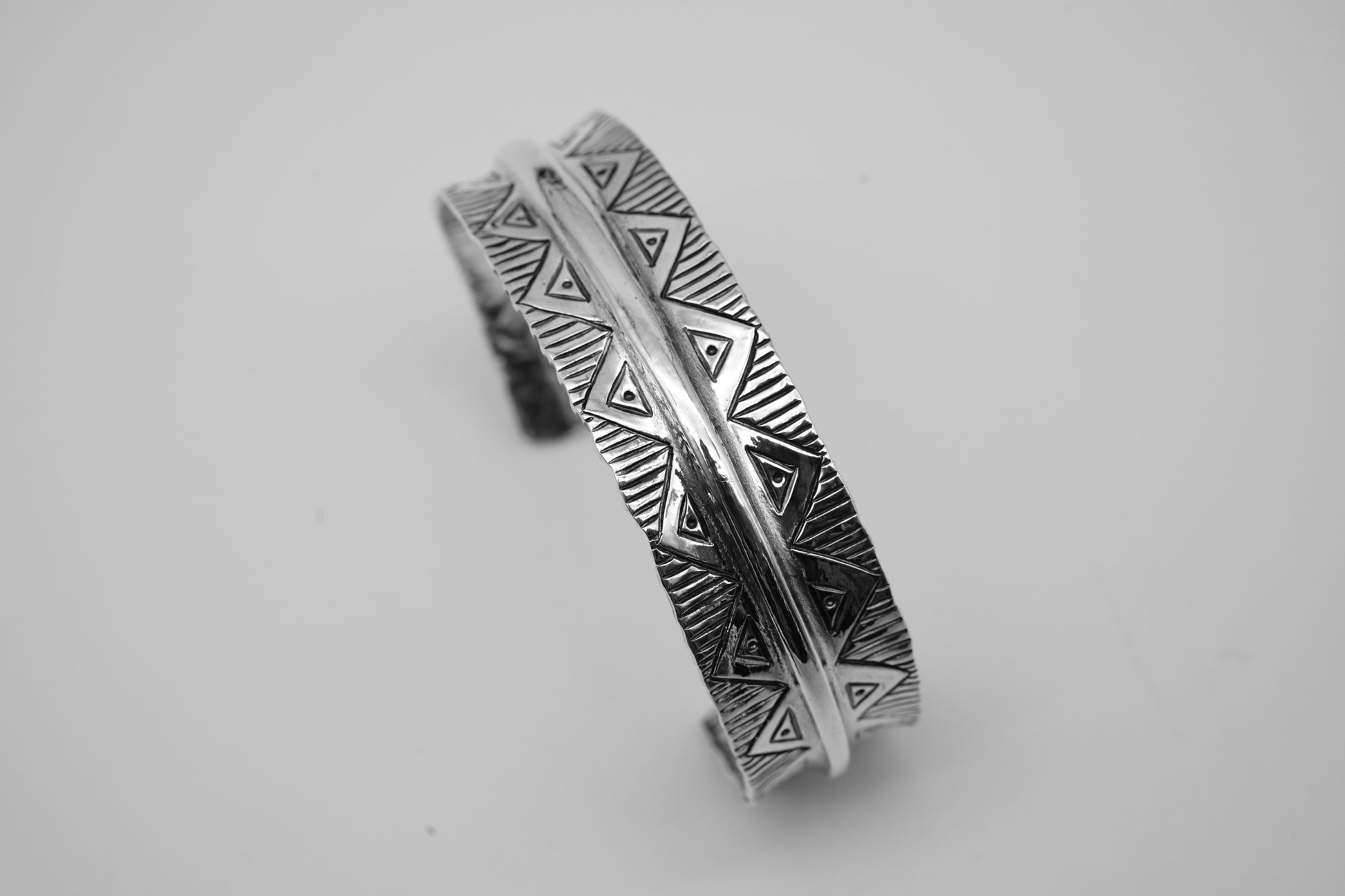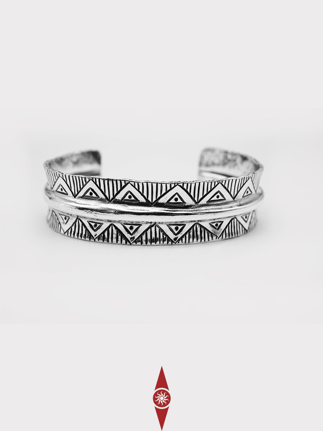 Handcrafted Sterling Silver Open Bracelet – Geometric Tribal Style