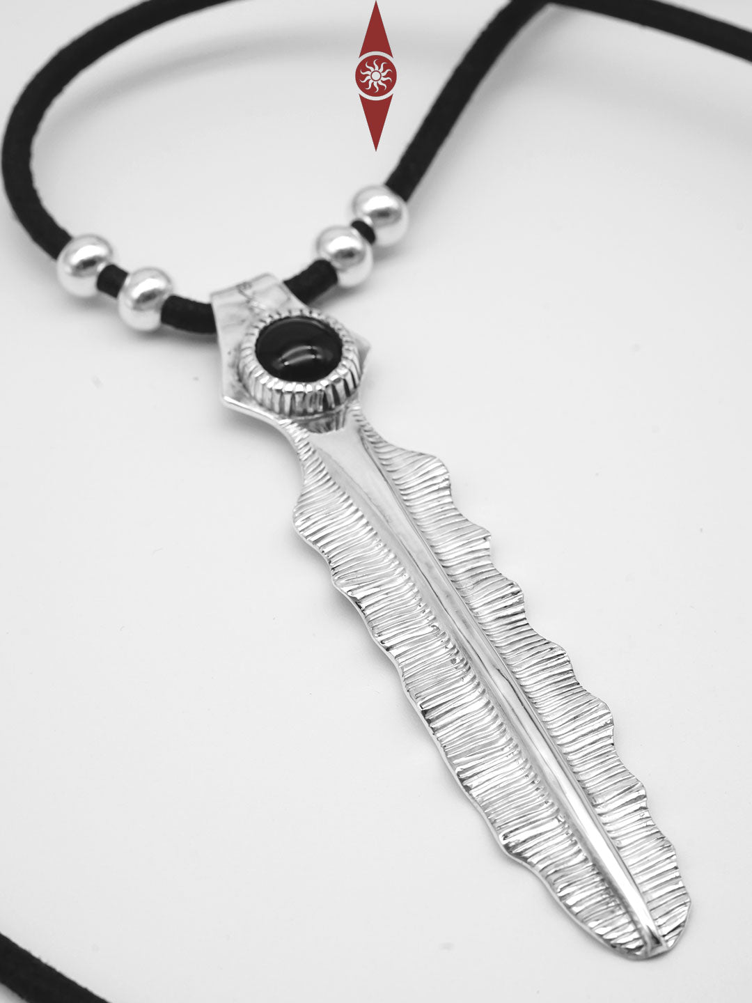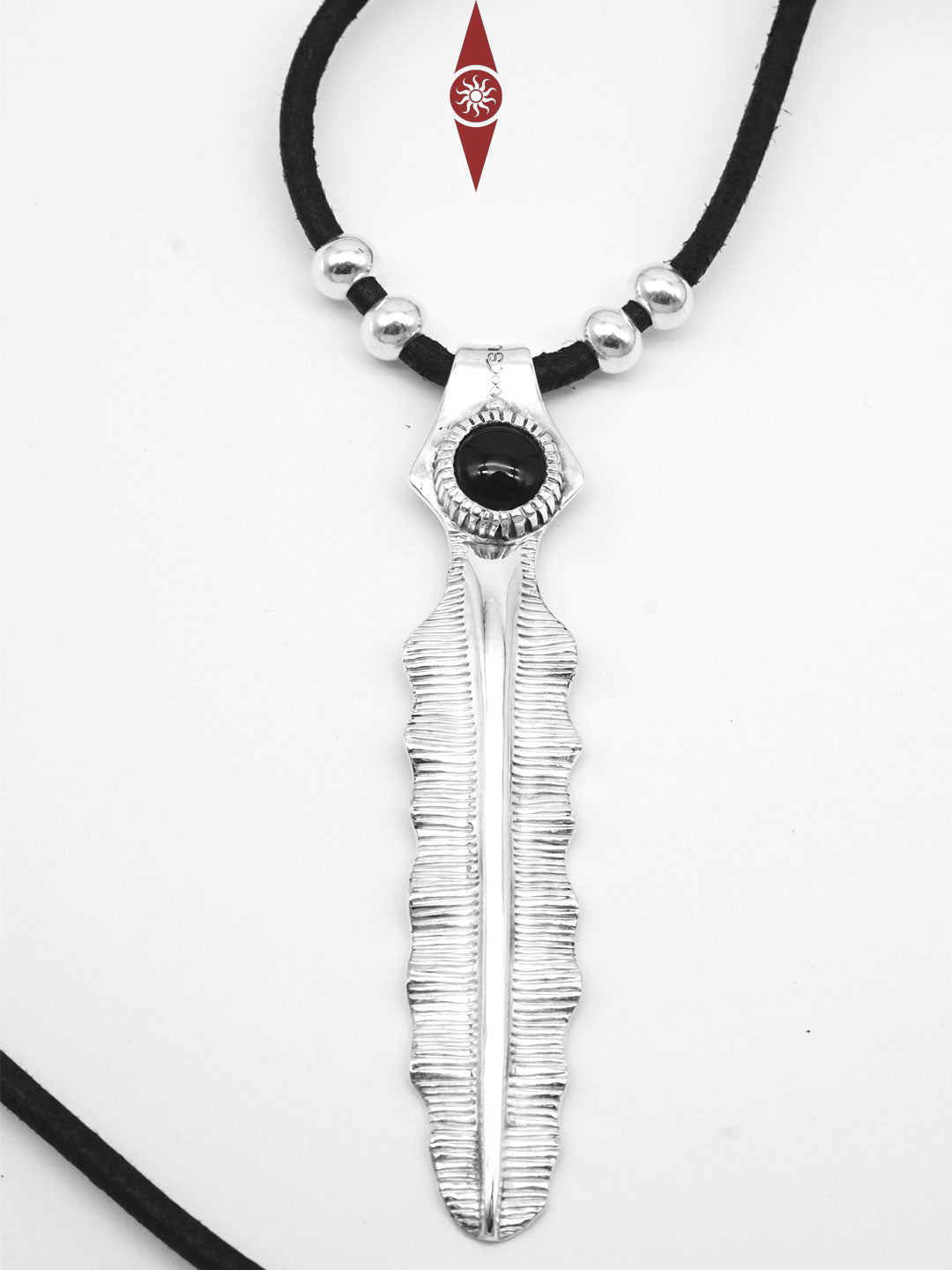 Handcrafted Sterling Silver Pendant with Black Onyx – Banana Leaf Inspired