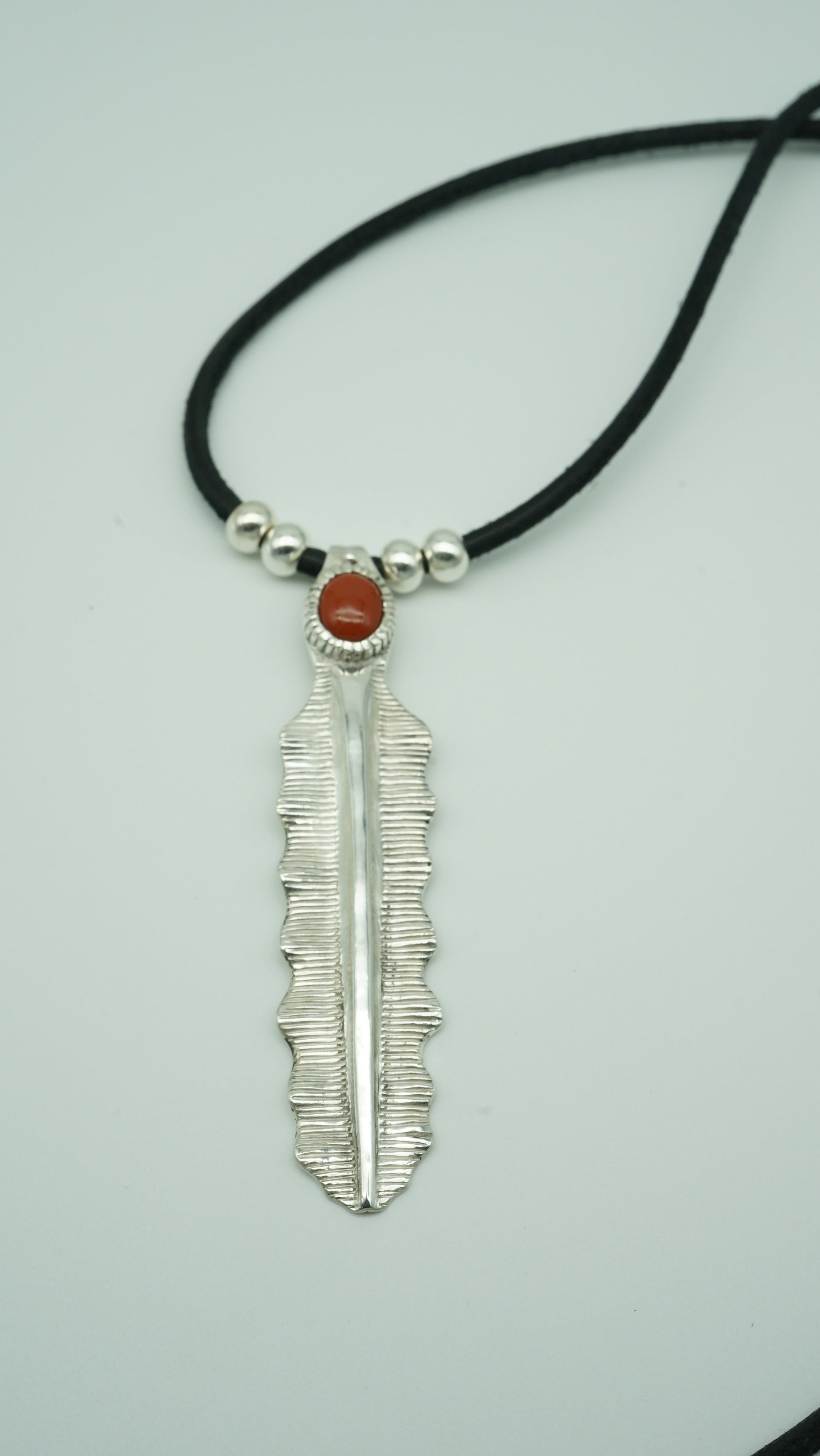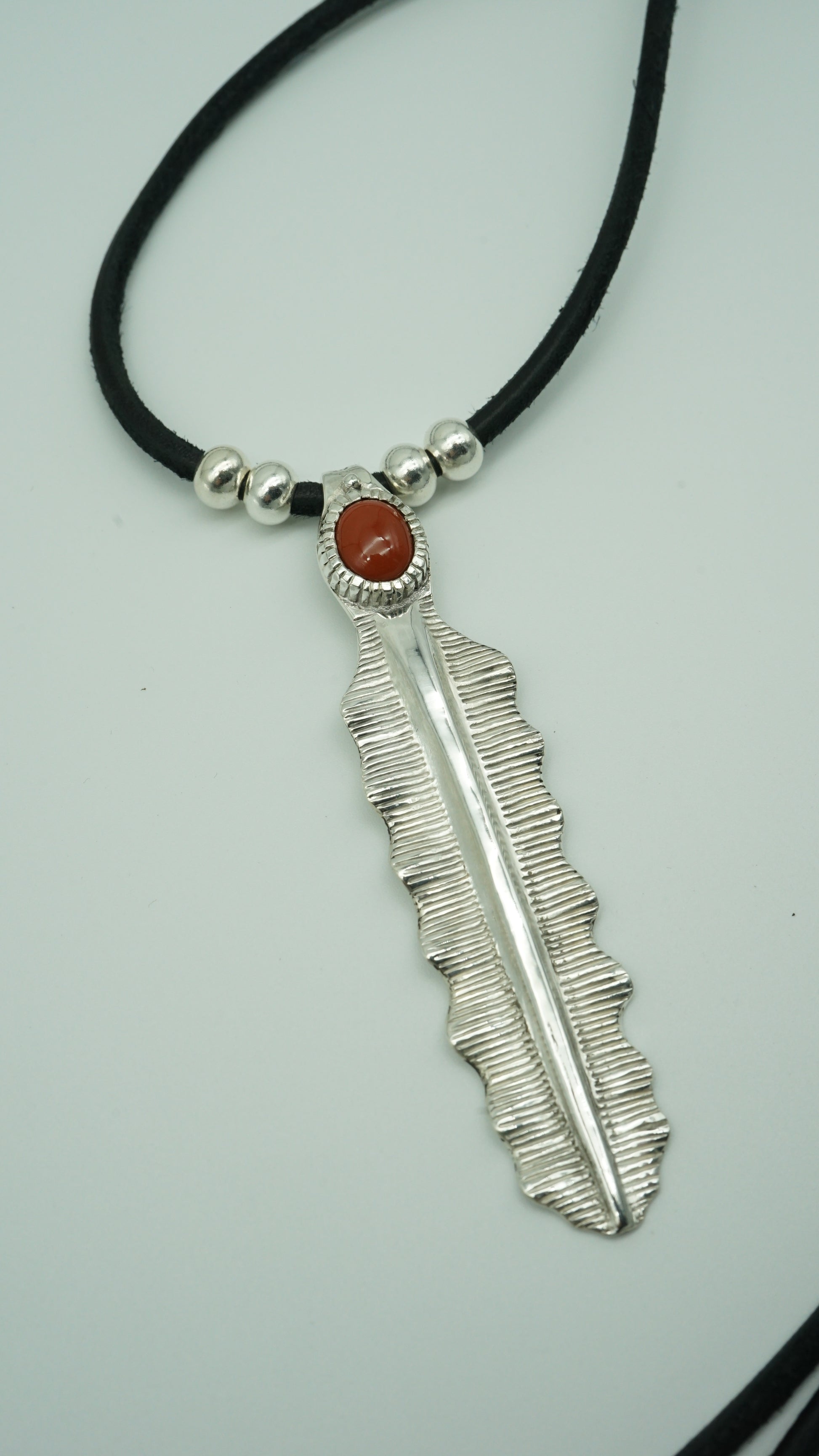 Handcrafted Sterling Silver Pendant with Red Agate – Banana Leaf Inspired